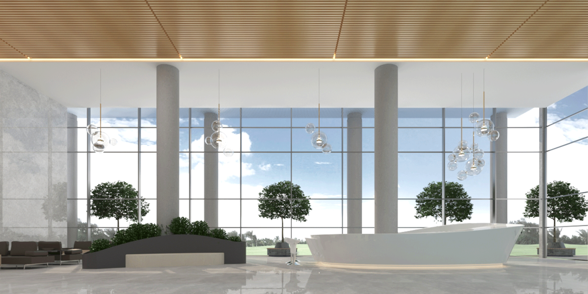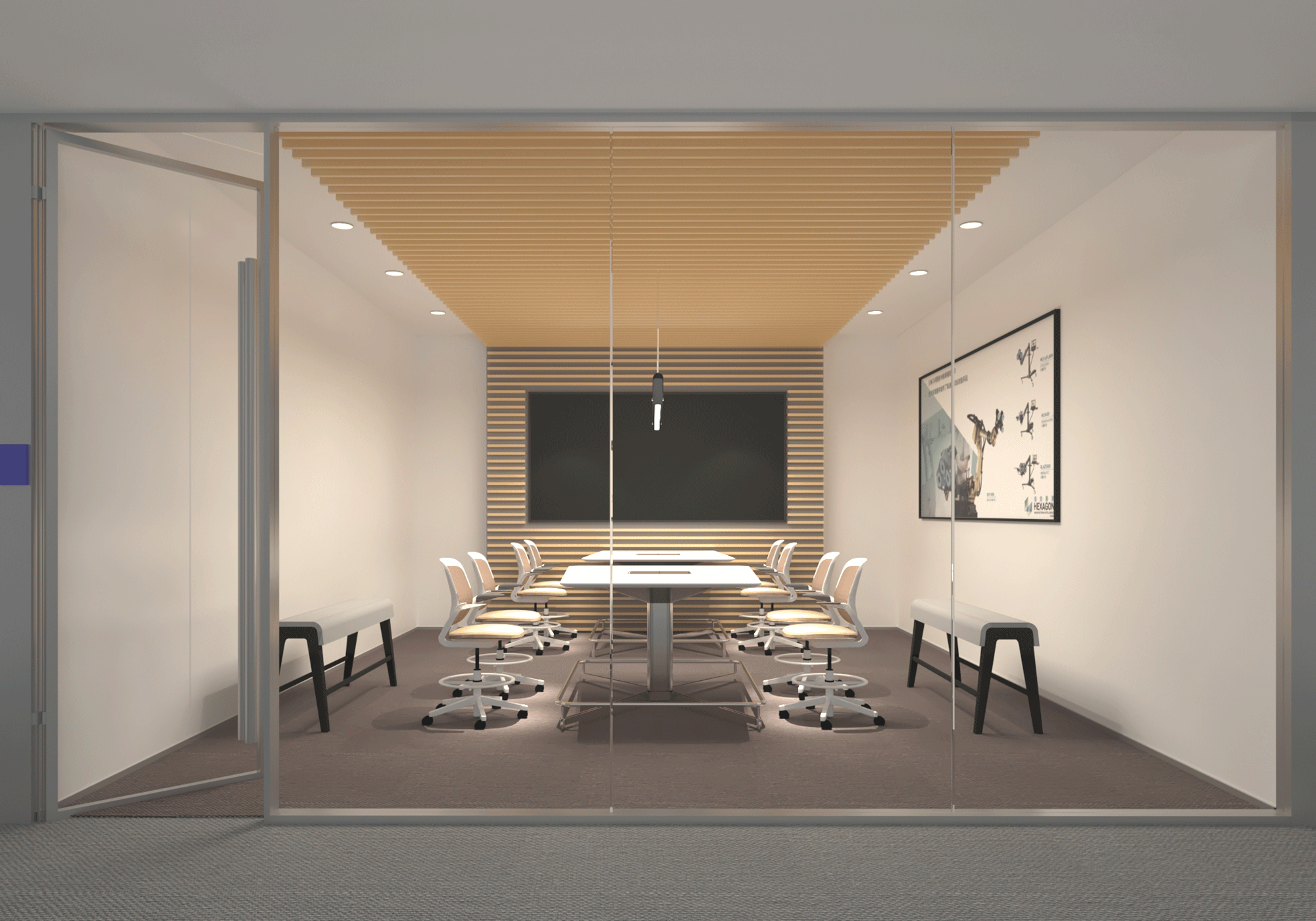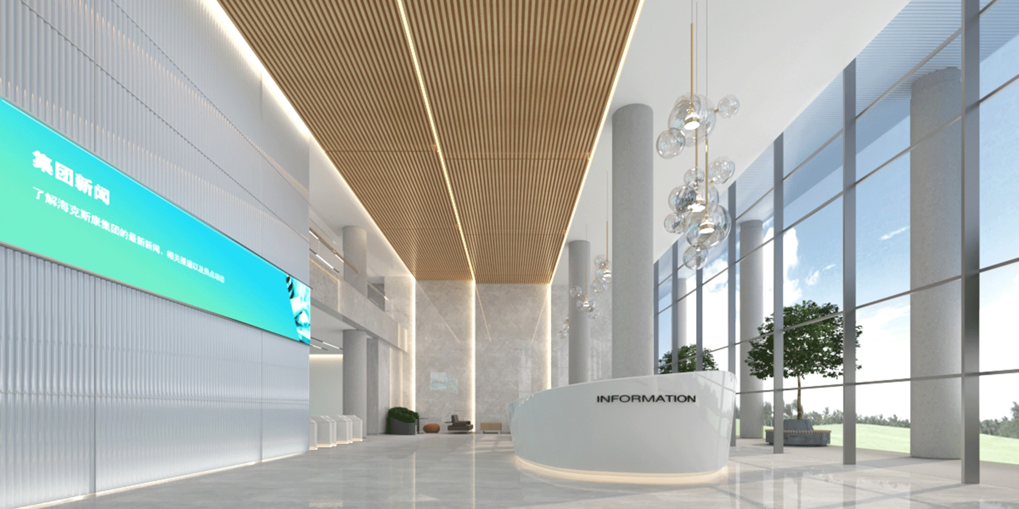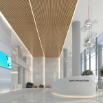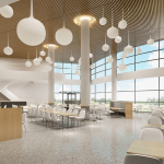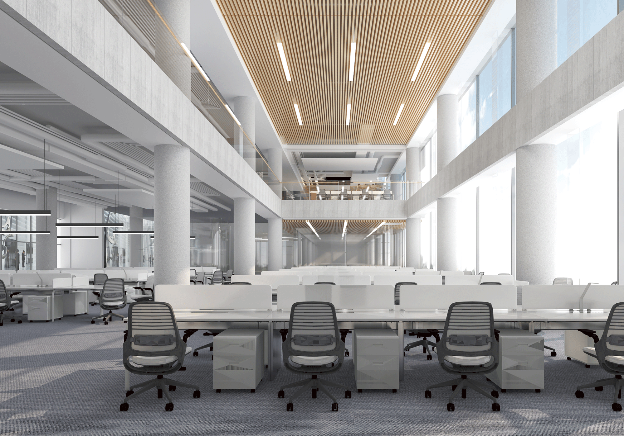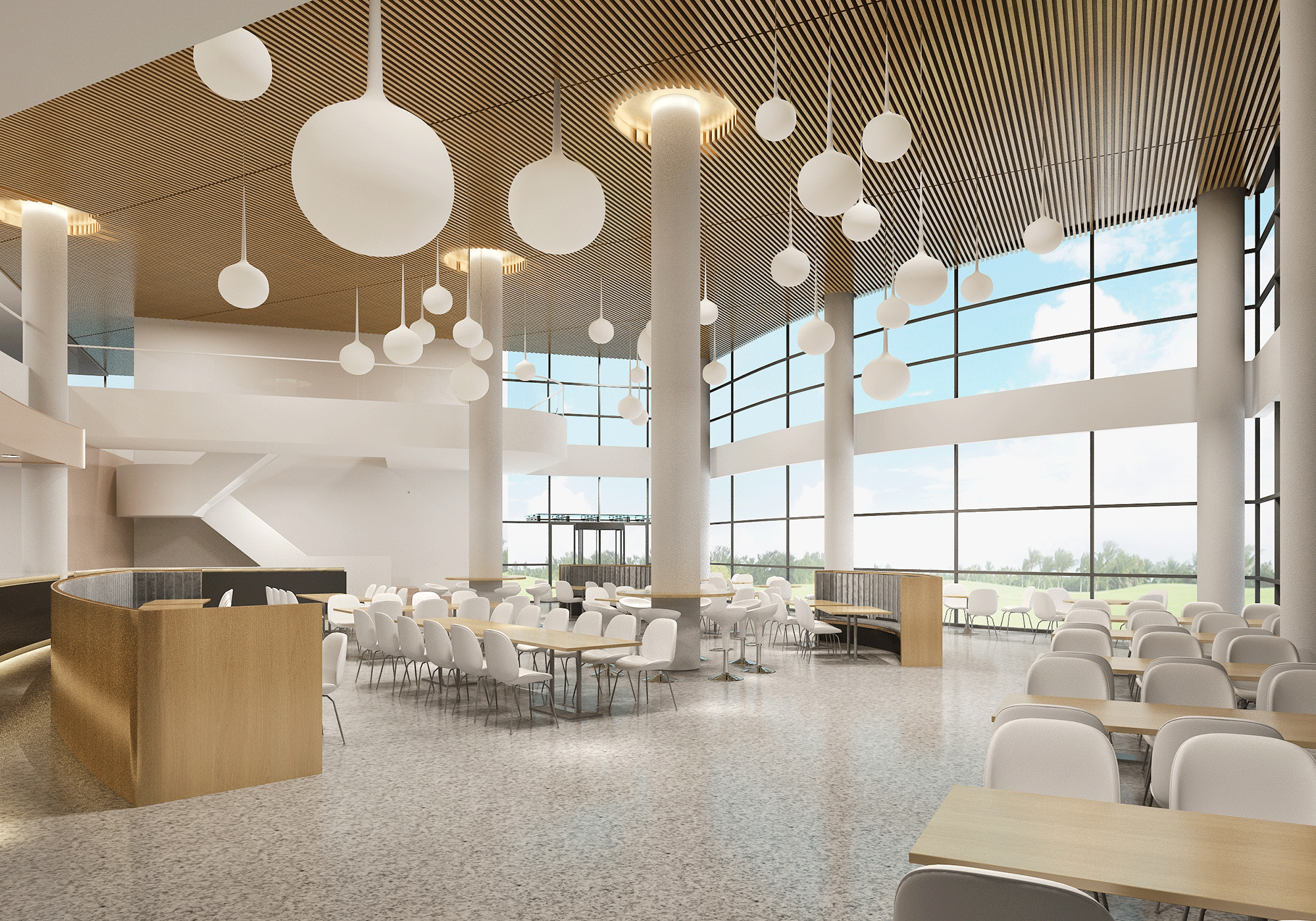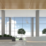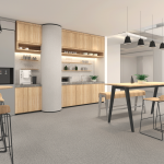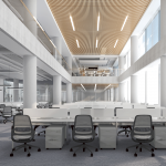 The demo and office building complex has a modern design, with prominent public spaces and areas that promote interaction, collaboration and creative communication, with the use of informal interactive breakout, meeting areas and pantries.